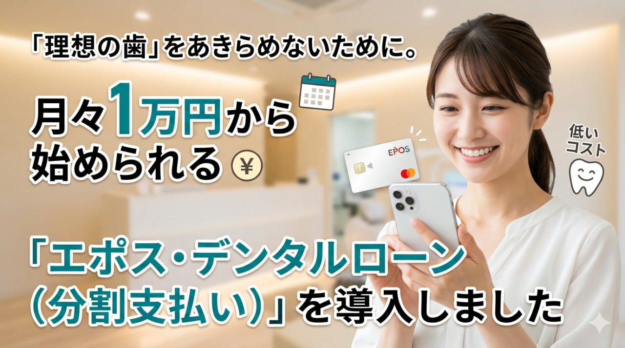 「理想の歯」をあきらめないために。月々1万円から始められる「エポス・デンタルローン(分割支払い)」を導入しました